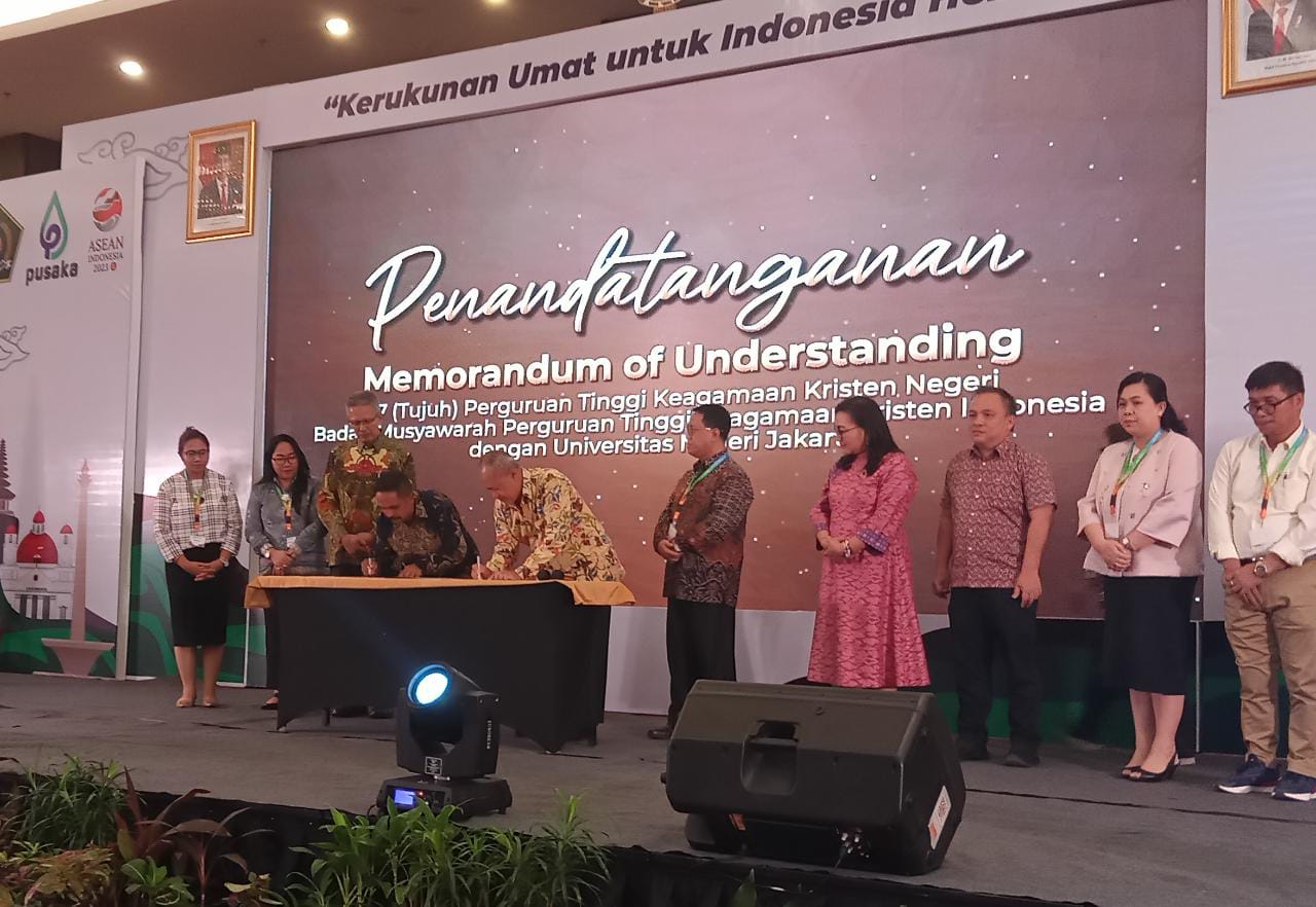 Pada Rapat Kerja Nasional Ditjen Bimas Kristen Kementerian Agama Republik Indonesia hari Selasa, 28 Februari 2023, 7 (Tujuh) Perguruan Tinggi Keagamaan Kristen Negeri (PTKKN) termasuk Institut Agama Kristen Negeri (IAKN) Kupang menjalin kerjasama dengan Badan Musyawarah Perguruan Tinggi Keagamaan Kristen Indonesia (BMPTKKI) dan Universitas Negeri Jakarta (UNJ) melalui penandatanganan Memorandum of Understanding (MoU) di Aston Kartika Hotel.