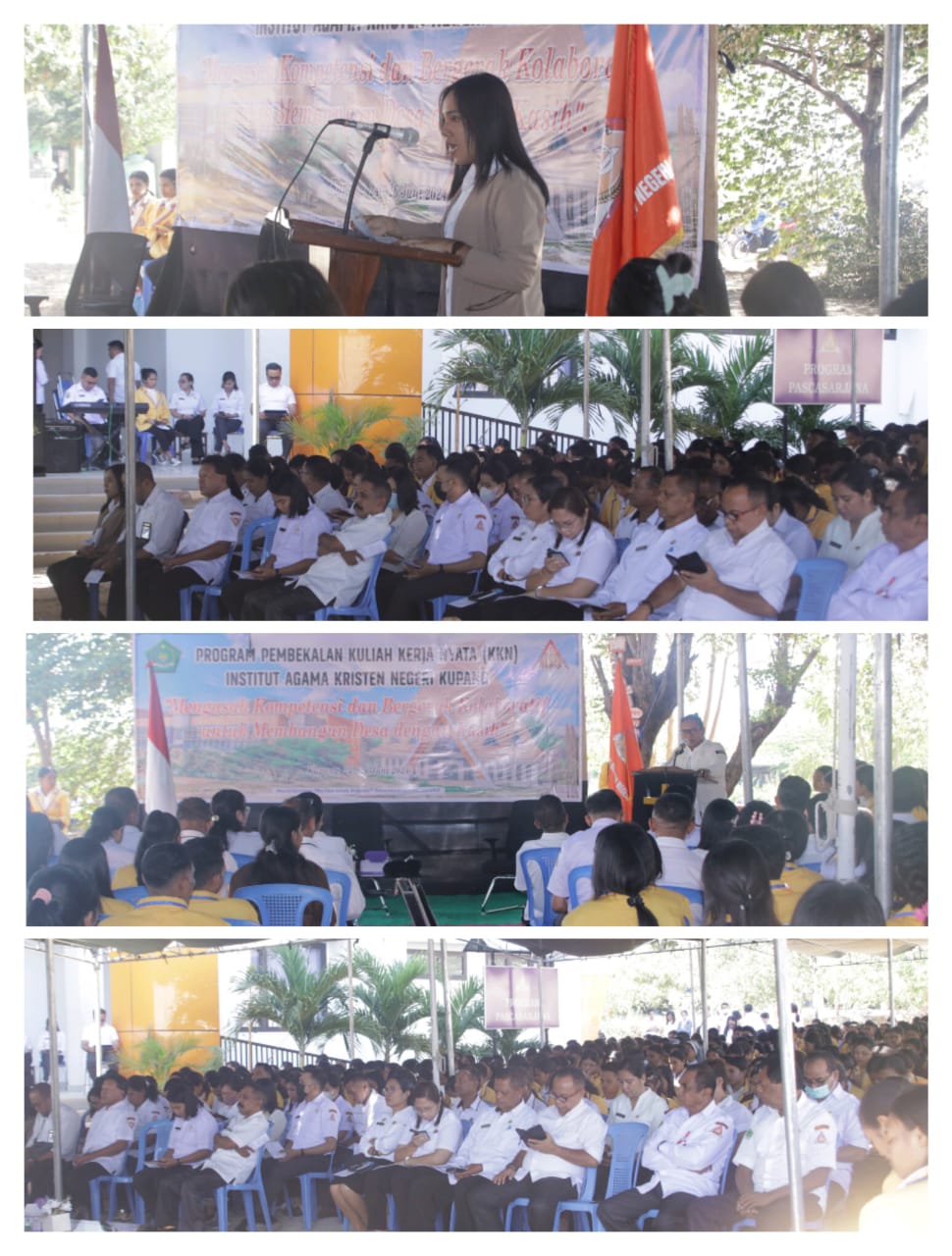 IAKN Kupang (Kemenag) – – – Institut Agama Kristen Negeri (IAKN) Kupang mengadakan Ibadah Pembukaan Pembekalan Kuliah Kerja Nyata (KKN) pada Senin (24/06/2024) dengan tema “Mengasah Kompetensi dan Bergerak Kolaboratif untuk Membangun Desa dengan Kasih.” Hadir dalam ibadah Rektor IAKN Kupang, Dr. Harun Y. Natonis, M.Si bersama para pimpinan lainnya.