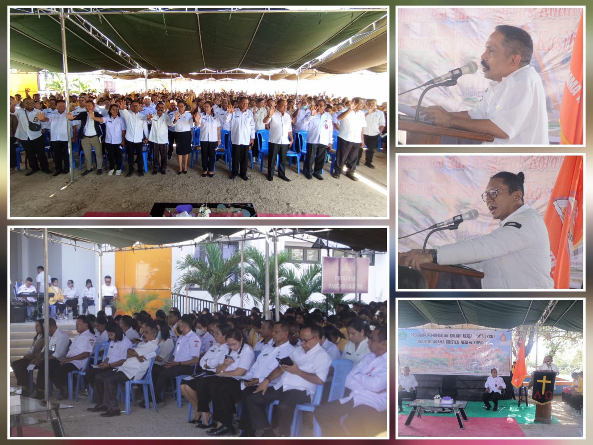 IAKN Kupang (Kemenag) – – – Institut Agama Kristen Negeri (IAKN) Kupang mengadakan kegiatan Pembekalan Kuliah Kerja Nyata (KKN) pada Senin (24/06/2024), dengan tema “Mengasah Kompetensi dan Bergerak Kolaboratif untuk Membangun Desa dengan Kasih.” Acara ini dibuka oleh Rektor IAKN Kupang, Dr. Harun Y. Natonis, S.Pd., M.Si., dan dihadiri oleh seluruh civitas akademika IAKN Kupang.