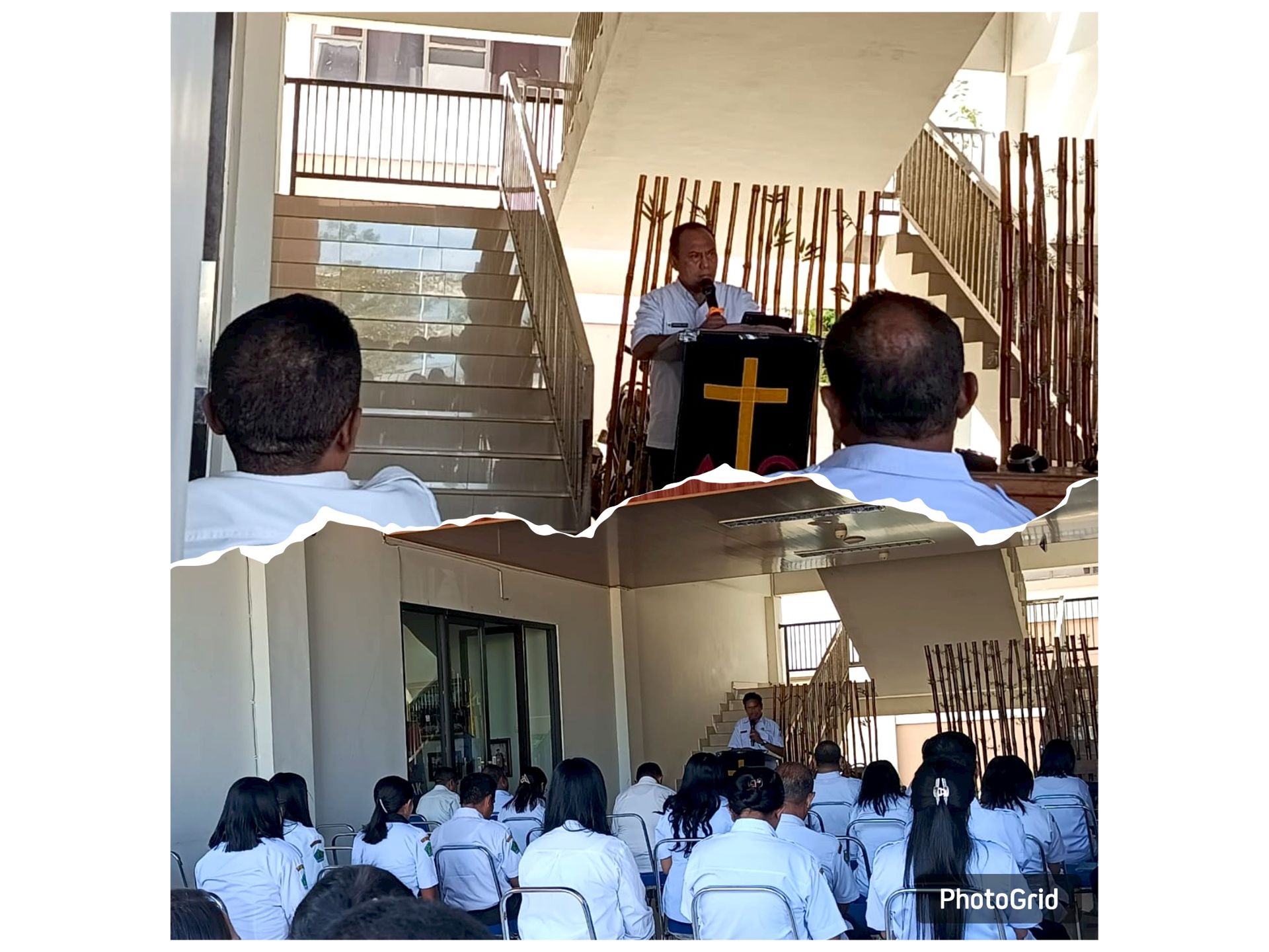 IAKN Kupang (Kemenag) – – – Kepala Biro Administrasi Umum, Akademik, dan Kemahasiswaan (AUAK) Institut Agama Kristen Negeri (IAKN) Kupang, Drs. Yorhans Lopis, M.Si, memberikan arahan dalam ibadah awal pekan yang diadakan pada Senin pagi. Ibadah tersebut juga dihadiri oleh Rektor IAKN Kupang, Dr. Harun Natonis, M.Si, serta jajaran pimpinan lainnya, dan diikuti oleh seluruh civitas akademika.