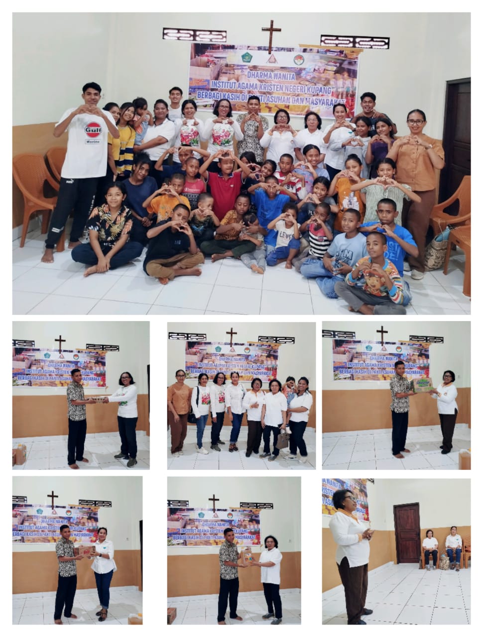Selain bercerita guna mengenal lebih dekat anak-anak panti asuhan Dharmawanita IAKN Kupang juga memberikan bantuan berupa paket sembako dan peralatan sekolah kepada anak-anak panti asuhan. Hal ini sebagai upaya nyata untuk meringankan beban mereka dan mendukung proses pembelajaran mereka di sekolah.