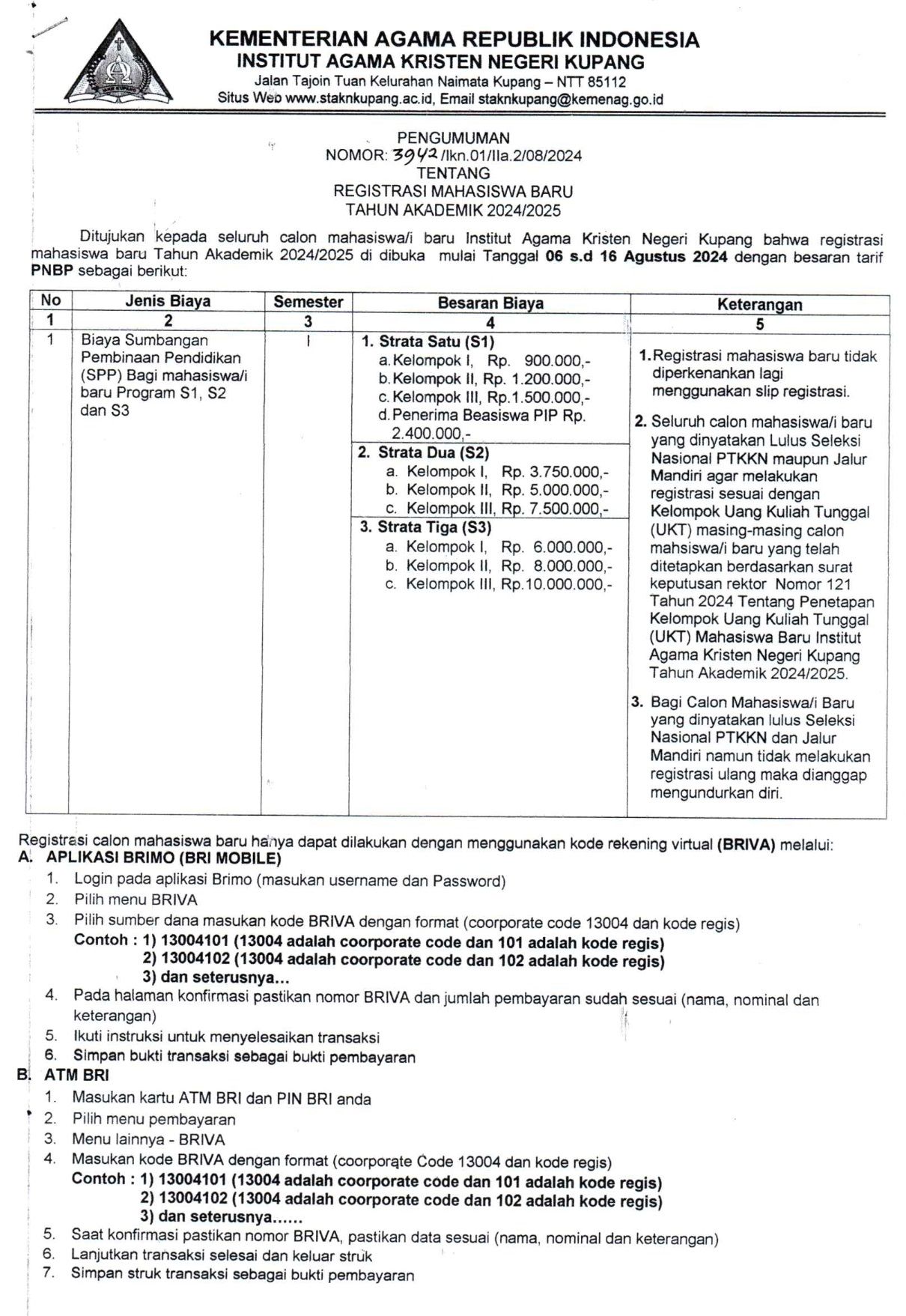 Pengumuman Registrasi Mahasiswa Baru 2024/2025 8 Agustus 2024 14:56 WITA | IAKN Kupang | Berita Kampus Previous Next Lampiran Pengumuman Registrasi Mahasiswa Baru 2024 Silakan Ikuti IAKN Kupang di Social Media Post navigation Sebelumnya: Dekan FISKK IAKN Kupang Sampaikan Arahan pada Apel Pagi: Fokus pada Evaluasi dan Kegiatan AkademikSelanjutnya: Menteri Agama Lantik Dirjen Pendidikan Islam dan Sejumlah Rektor PTKN Berita Kampus Lainnya Dekan FISKK IAKN Kupang Ajak Civitas Akademika Jaga Produktivitas dan Sinergi dalam Pelayanan 12/11/2024 IAKN Kupang Gelar Upacara Hari Pahlawan, Ajak Civitas Akademika Teladani Semangat Kepahlawanan 12/11/2024 IAKN Kupang Perkuat Kolaborasi Pendidikan Internasional dengan Taiwan 12/11/2024 IAKN Kupang Apresiasi Mahasiswa Berprestasi, Endi Missa Peraih Emas PEPARNAS XVII 11/11/2024 Pengumuman Perpanjangan Pendaftaran Wisuda Tahap II Tahun 2024 04/11/2024 Rektor IAKN Kupang Tekankan 5 Pilar Mentalitas: Membangun SDM Unggul Bersama Pemkab Kupang 31/10/2024 Audiensi IAKN Kupang dan Pemkab Kupang: Sinergi Membangun SDM Unggul dan Kampus Berintegritas 31/10/2024 IAKN Kupang Jalin Kerja Sama dengan Gwacheon Cultural Center, Korea Selatan 30/10/2024 IAKN Kupang Gelar Seminar Nasional Psikologi: Membangun Resiliensi Mental di Era Society 5.0 30/10/2024 Seminar ‘Fatherless: The Way to Find Yourself’ Dorong Pencarian Jati Diri di Tengah Kehilangan Figur Ayah 30/10/2024 Kategori Acara & Tulisan IlmiahBerita KampusSEKILAS IAKN KUPANG Berita Terbaru IAKN Kupang Gelar Ibadah Awal Pekan: Ajak Civitas Akademika Renungkan Orientasi Kerja dalam Iman 12/11/2024 Acara & Tulisan Ilmiah Baca selengkapnya Dekan FISKK IAKN Kupang Ajak Civitas Akademika Jaga Produktivitas dan Sinergi dalam Pelayanan 12/11/2024 Berita Kampus Baca selengkapnya IAKN Kupang Gelar Upacara Hari Pahlawan, Ajak Civitas Akademika Teladani Semangat Kepahlawanan 12/11/2024 Berita Kampus Baca selengkapnya IAKN Kupang Perkuat Kolaborasi Pendidikan Internasional dengan Taiwan 12/11/2024 Berita Kampus Baca selengkapnya