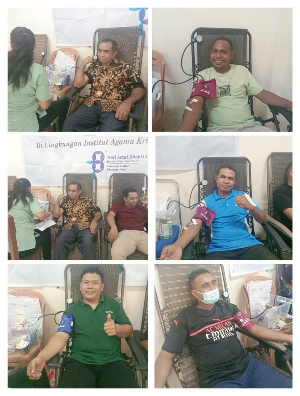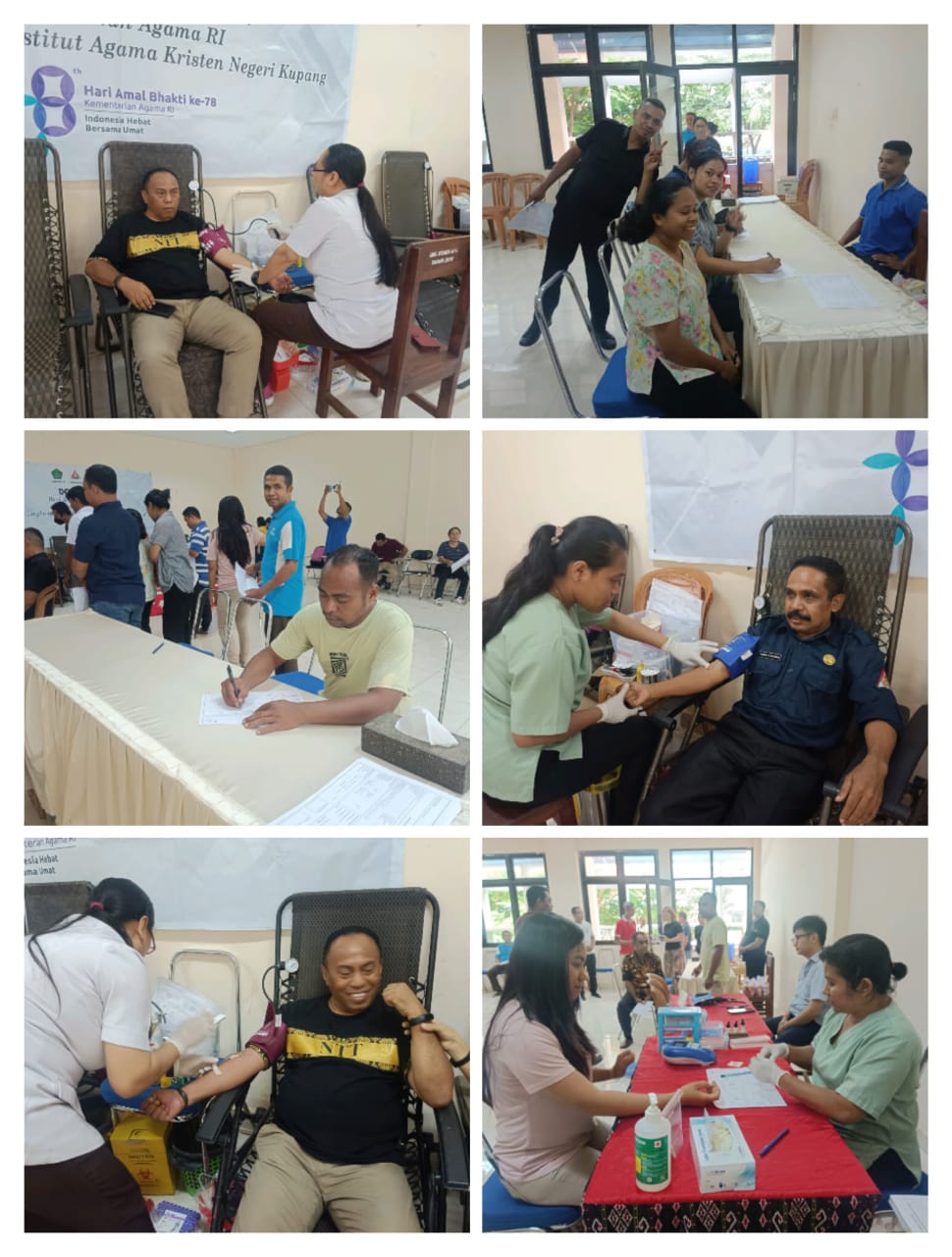 IAKN Kupang (Kemenag) – – – Dalam rangka perayaan Hari Amal Bhakti Kementerian Agama Republik Indonesia yang ke-78, Institut Agama Kristen Negeri (IAKN) Kupang menggelar kegiatan donor darah yang diikuti oleh seluruh civitas akademika Pada Jumat (12/01/2024).