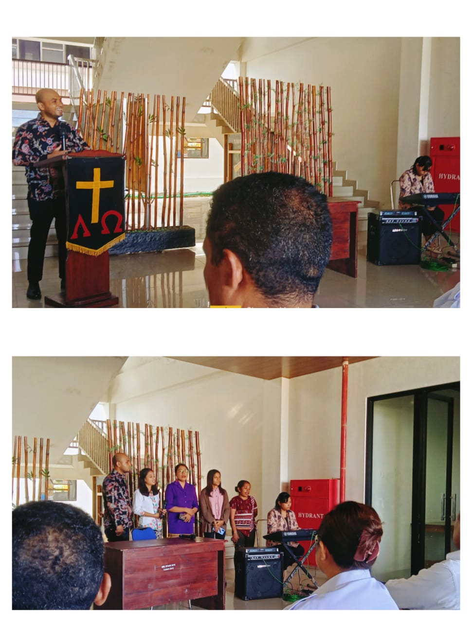 Ibadah ditutup dengan pengumuman oleh BINROPUS (Dr. Daud Saleh Luji, M.Pd) bahwa Minggu depan ibadah akan dilayani oleh Prodi Pastoral Konseling.