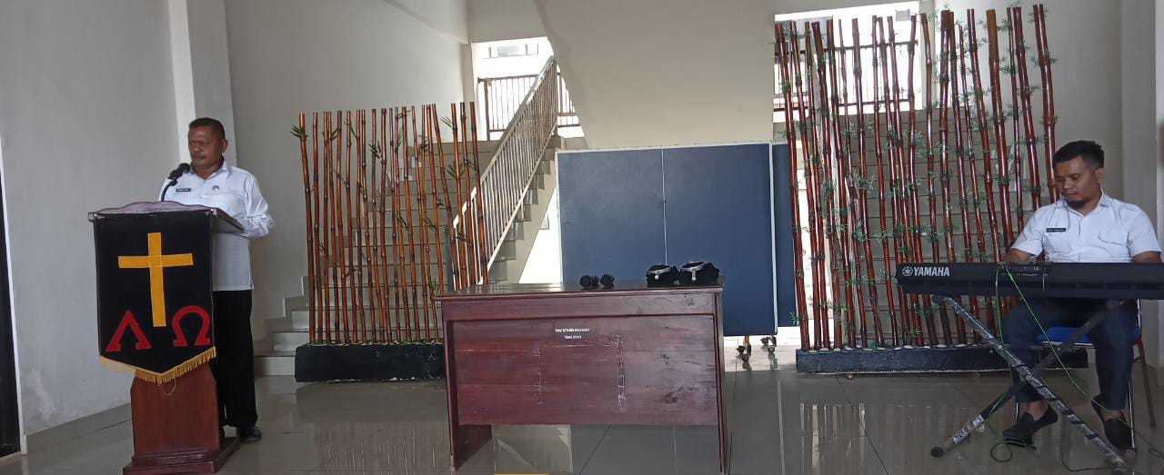 Wakil Rektor III Bidang Kemahasiswaan dan Kerjasama (Soleman Baun, M.Pd.K) memberikan arahan dalam Ibadah awal pekan di Lingkup Institut Agama Kristen Negeri Kupang (IAKN Kupang) Pada hari Senin, 6 Februari 2023.