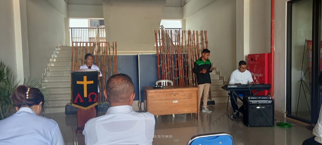 Baca selengkapnyaIAKN Kupang (Kemenag) – – – Pukul 08.00 WITA, Senin (04/12/2023), Institut Agama Kristen Negeri (IAKN) Kupang mengawali pekan dengan ibadah yang dilayani oleh Program Studi Pendidikan Penyuluh Agama (PPA). Ibadah ini melibatkan dosen dan mahasiswa prodi PPA yakni Liturgos oleh Merling T.L.L.C. Messakh, M.Pd, Kotbah oleh Rita, M.Pd, Doa syafaat dan berkat oleh Meyrlin […]
