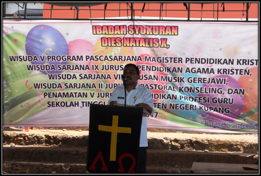 Kupang (27/09/2017), Sekolah Tinggi Agama Kristen Negeri (STAKN) Kupang melaksanakan Ibadah Syukuran Dies Natalis X yang dipimpin oleh Pdt. Yaksi Nubantimo, S.Th.  Diusia yang kesepuluh tahun STAKN Kupang hadir sebagai Perguruan Tinggi Negeri Kristen yang berkontribusi lebih pada pengembangan Pendidikan Agama dan Keagamaan Kristen di NTT. Output STAKN Kupang diharapkan menjadi motor penggerak pelayanan di Gereja, masyarakat Indonesia di bidang Agama dan Keagamaan. Bahkan, STAKN Kupang menjadi motor penggerak utuhnya kemajemukkan di Provinsi NTT dan Indonesia Umumnya ungkap Ketua STAKN Kupang Dr. Harun Y. Natonis, M.Si dalam sambutannya.