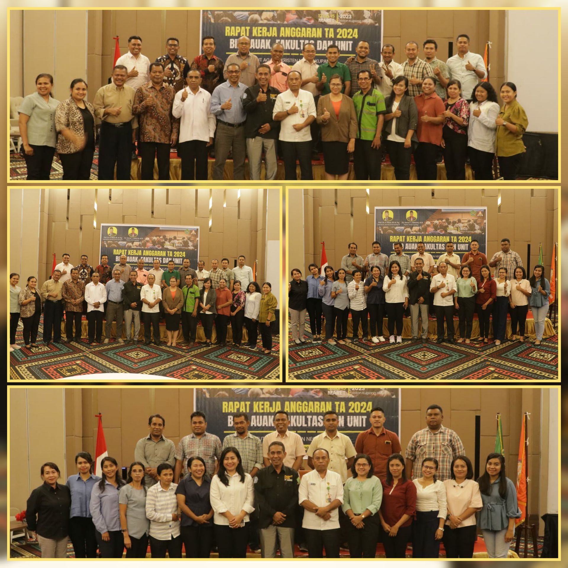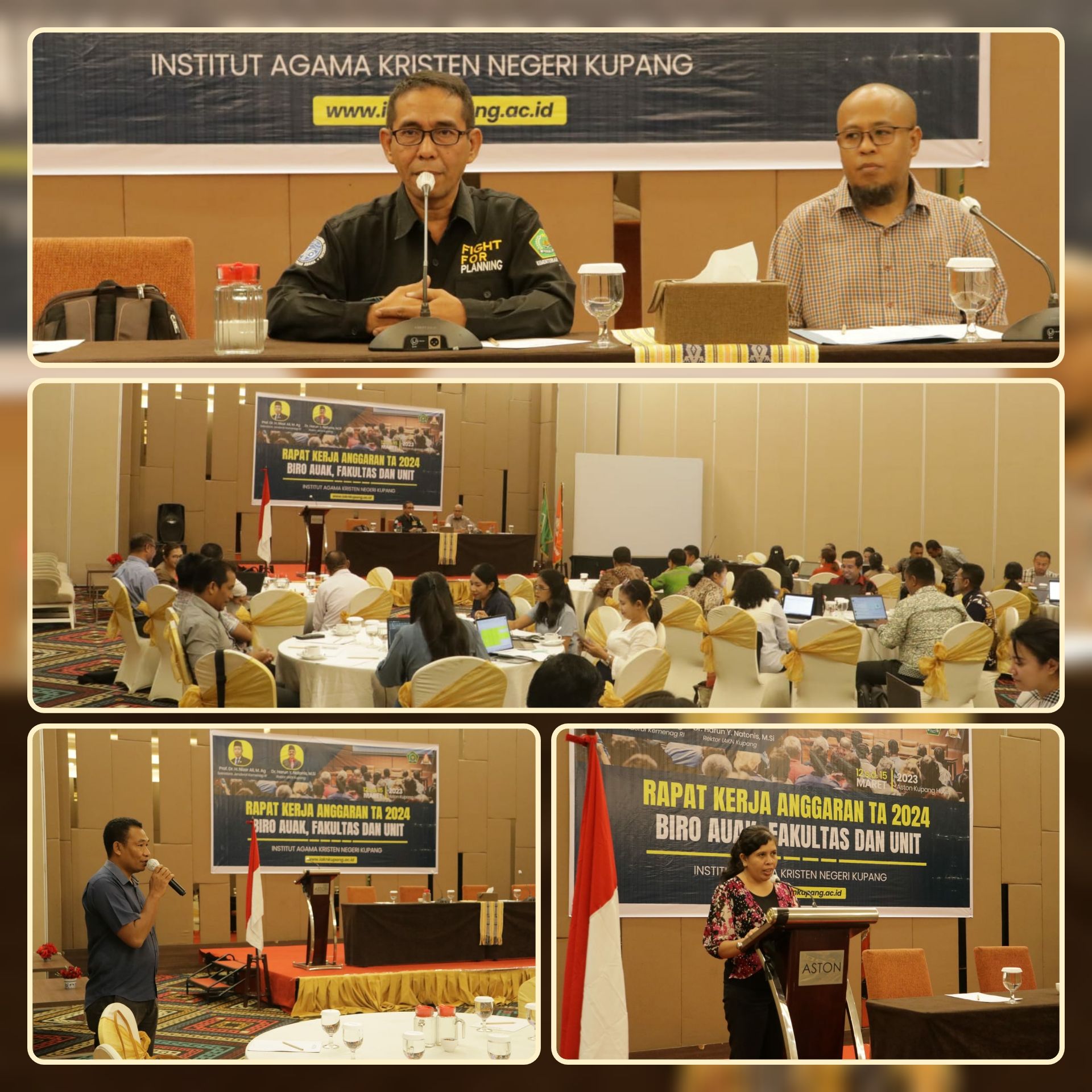 Hari ke – 2 (Kedua) Rapat Kerja Anggaran T.A 2024 Biro AUAK, Fakultas dan Unit IAKN Kupang Pada Senin, 13 Maret 2023 di Hotel Aston Kupang, Nusa Tenggara Timur dimulai dengan ibadah bersama yang dipimpin oleh Ibu Maria Indriani Sesfao, M.Pd.K.