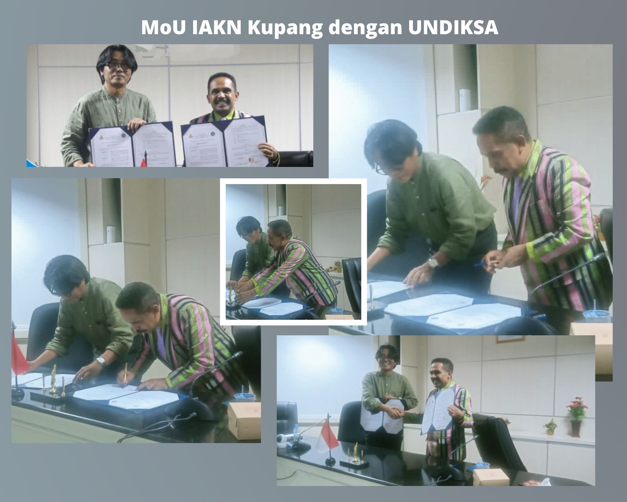 Rektor Institut Agama Kristen Negeri (IAKN) Kupang, Dr. Harun Yermia Natonis, M.Si melakukan penandatanganan MOU dengan Wakil Rektor I Universitas Pendidikan Ganesha, Prof.Dr.Gede Rasben Dantes, S.T., M.T.I sebagai bentuk dari perjanjian kerjasama. Penandatangan MOU ini dilaksanakan pada Selasa, 7 Maret 2023 di Denpasar. Ikut hadir dalam kegiatan tersebut Kepala Biro Administrasi Umum, Akademik dan Kemahasiswaan Institut Agama Kristen Negeri Kupang, Drs. Yorhans S. Lopis, M.Si.