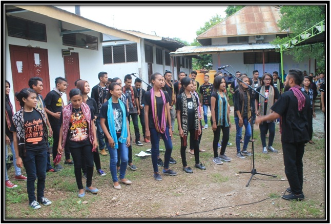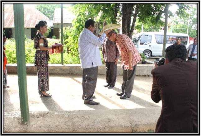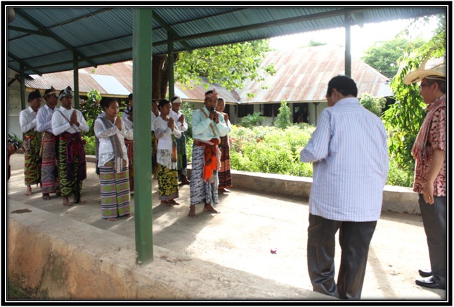 Sebelum Sekjen masuk ke ruang kerja ketua Sekolah Tinggi Agama Kristen Negeri Kupang di sambut dengan Natoni oleh mahasiswa Sekolah Tinggi Agama Kristen Negeri Kupang.