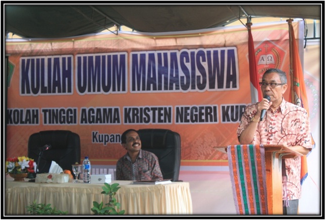 Dalam kuliah umum bapak Sekretaris Jenderal Kementerian Agama mengatakan Dalam Renstra Sekolah Tinggi Agama Kristen Negeri Kupang harus memuat berapa dosen yang harus jadi Doktor 4 tahun kedepan kalau hal itu sulit dicapai maka harus direkrut Doktor-doktor menjadi dosen-dosen tetap Bukan PNS yang kemudian bisa membantu secara optimal terhadap tujuan lembaga Kristen ini .