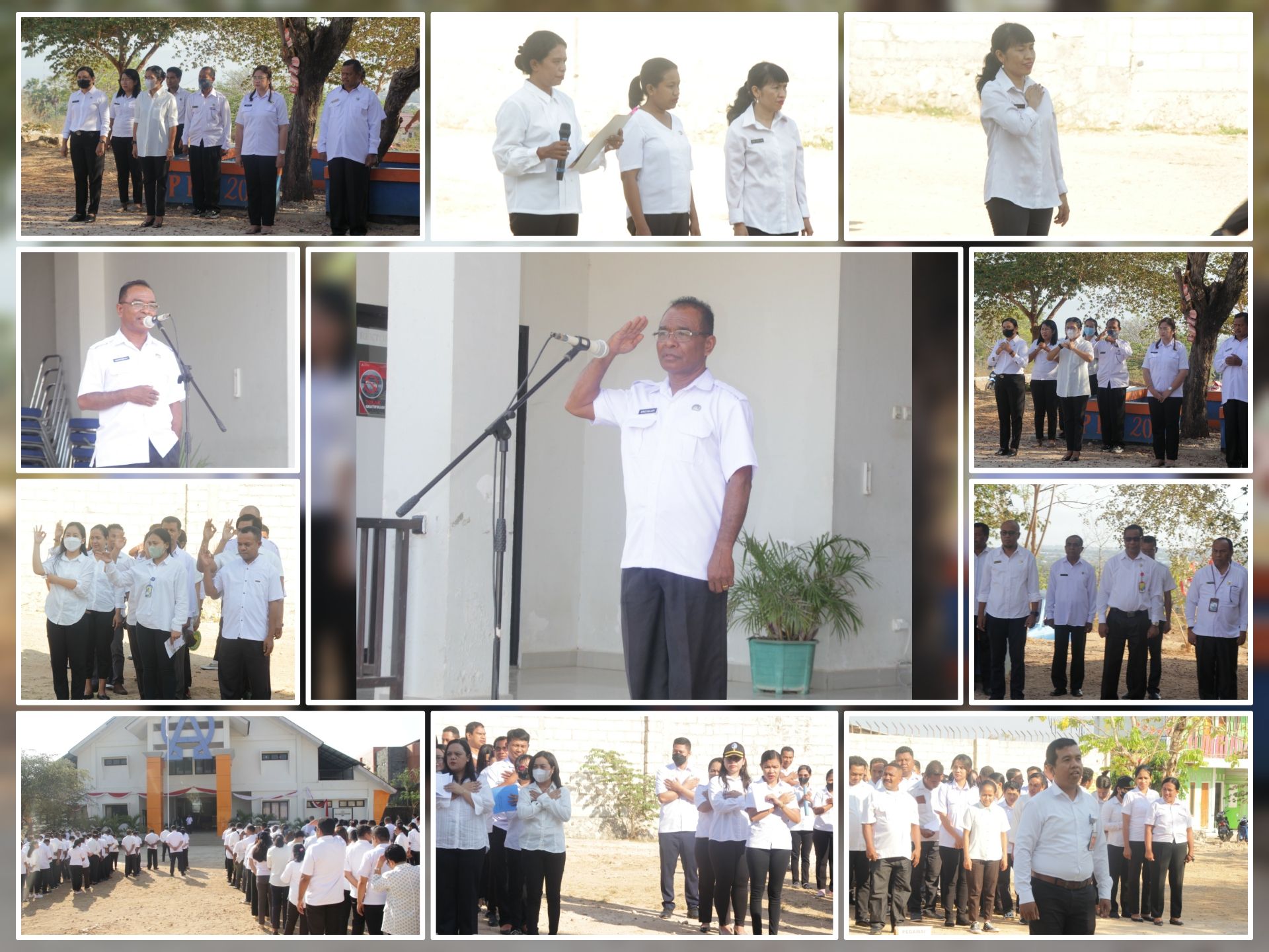 Pada kesempatan tersebut, pelaksanaan apel dipimpin oleh Iswanto, M. Hum sebagai pemimpin apel, dengan Dewi Ch. Kameo, S. Kom bertugas sebagai petugas protokol. Irene E. Daik, M. Pd, mengambil peran penting dalam pengucapan Lima Nilai Budaya Kerja, sementara Doa diucapkan oleh Doni A. L. Liu, M. Pd.