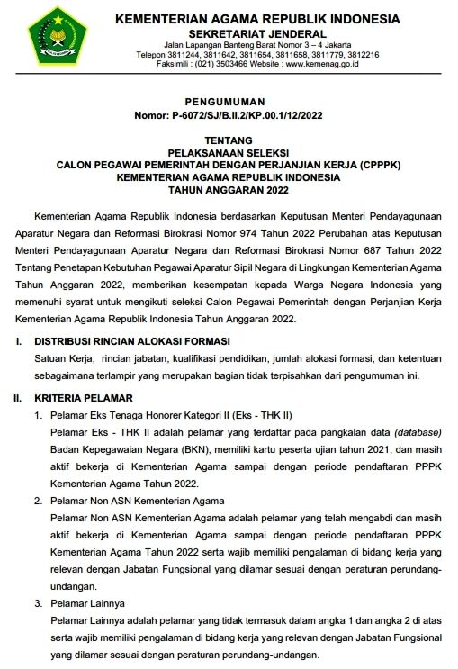 Pelaksanaan Seleksi CPPPK Kementerian Agama Republik Indonesia 2022 22 Desember 2022 06:06 WITA | IAKN Kupang | Berita Kampus Previous Next Lampiran Pengumuman Lengkap Silakan Ikuti IAKN Kupang di Social Media Post navigation Sebelumnya: Penutupan Registrasi Keuangan Akhir Tahun 2022Selanjutnya: Pengumuman Registrasi Semester Genap T.A 2022/2023 Berita Kampus Lainnya Dekan FISKK IAKN Kupang Ajak Civitas Akademika Jaga Produktivitas dan Sinergi dalam Pelayanan 12/11/2024 IAKN Kupang Gelar Upacara Hari Pahlawan, Ajak Civitas Akademika Teladani Semangat Kepahlawanan 12/11/2024 IAKN Kupang Perkuat Kolaborasi Pendidikan Internasional dengan Taiwan 12/11/2024 IAKN Kupang Apresiasi Mahasiswa Berprestasi, Endi Missa Peraih Emas PEPARNAS XVII 11/11/2024 Pengumuman Perpanjangan Pendaftaran Wisuda Tahap II Tahun 2024 04/11/2024 Rektor IAKN Kupang Tekankan 5 Pilar Mentalitas: Membangun SDM Unggul Bersama Pemkab Kupang 31/10/2024 Audiensi IAKN Kupang dan Pemkab Kupang: Sinergi Membangun SDM Unggul dan Kampus Berintegritas 31/10/2024 IAKN Kupang Jalin Kerja Sama dengan Gwacheon Cultural Center, Korea Selatan 30/10/2024 IAKN Kupang Gelar Seminar Nasional Psikologi: Membangun Resiliensi Mental di Era Society 5.0 30/10/2024 Seminar ‘Fatherless: The Way to Find Yourself’ Dorong Pencarian Jati Diri di Tengah Kehilangan Figur Ayah 30/10/2024 Kategori Acara & Tulisan IlmiahBerita KampusSEKILAS IAKN KUPANG Berita Terbaru IAKN Kupang Gelar Ibadah Awal Pekan: Ajak Civitas Akademika Renungkan Orientasi Kerja dalam Iman 12/11/2024 Acara & Tulisan Ilmiah Baca selengkapnya Dekan FISKK IAKN Kupang Ajak Civitas Akademika Jaga Produktivitas dan Sinergi dalam Pelayanan 12/11/2024 Berita Kampus Baca selengkapnya IAKN Kupang Gelar Upacara Hari Pahlawan, Ajak Civitas Akademika Teladani Semangat Kepahlawanan 12/11/2024 Berita Kampus Baca selengkapnya IAKN Kupang Perkuat Kolaborasi Pendidikan Internasional dengan Taiwan 12/11/2024 Berita Kampus Baca selengkapnya