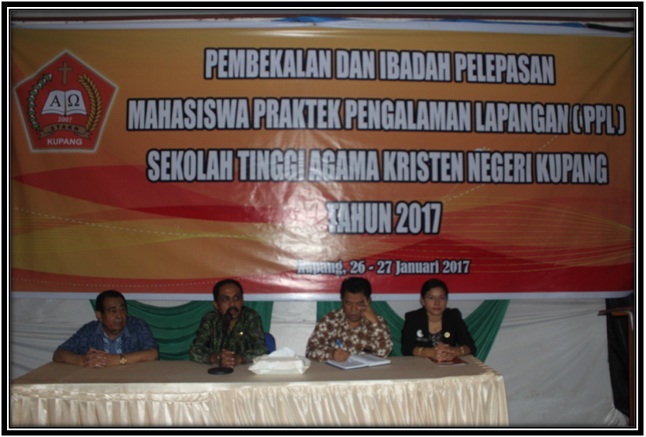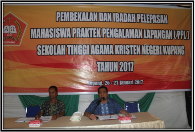 Sebelum melepas mahasiswa, Sekolah Tinggi Agama Kristen Negeri Kupang melakukan pembekalan selama 2 hari dari tanggal 25 sampai dengan 26 januari 2017 bertempat di kampus I. Dalam Sambutan membuka kegiatan PPL Ketua STAKN Kupang mengarahkan mahasiswa PPL untuk lebih baik lagi dari tahun-tahun sebelumnya dan juga mahasiswa PPL harus intens berkomunikasi dengan guru pamong begitu juga dosen pendamping.