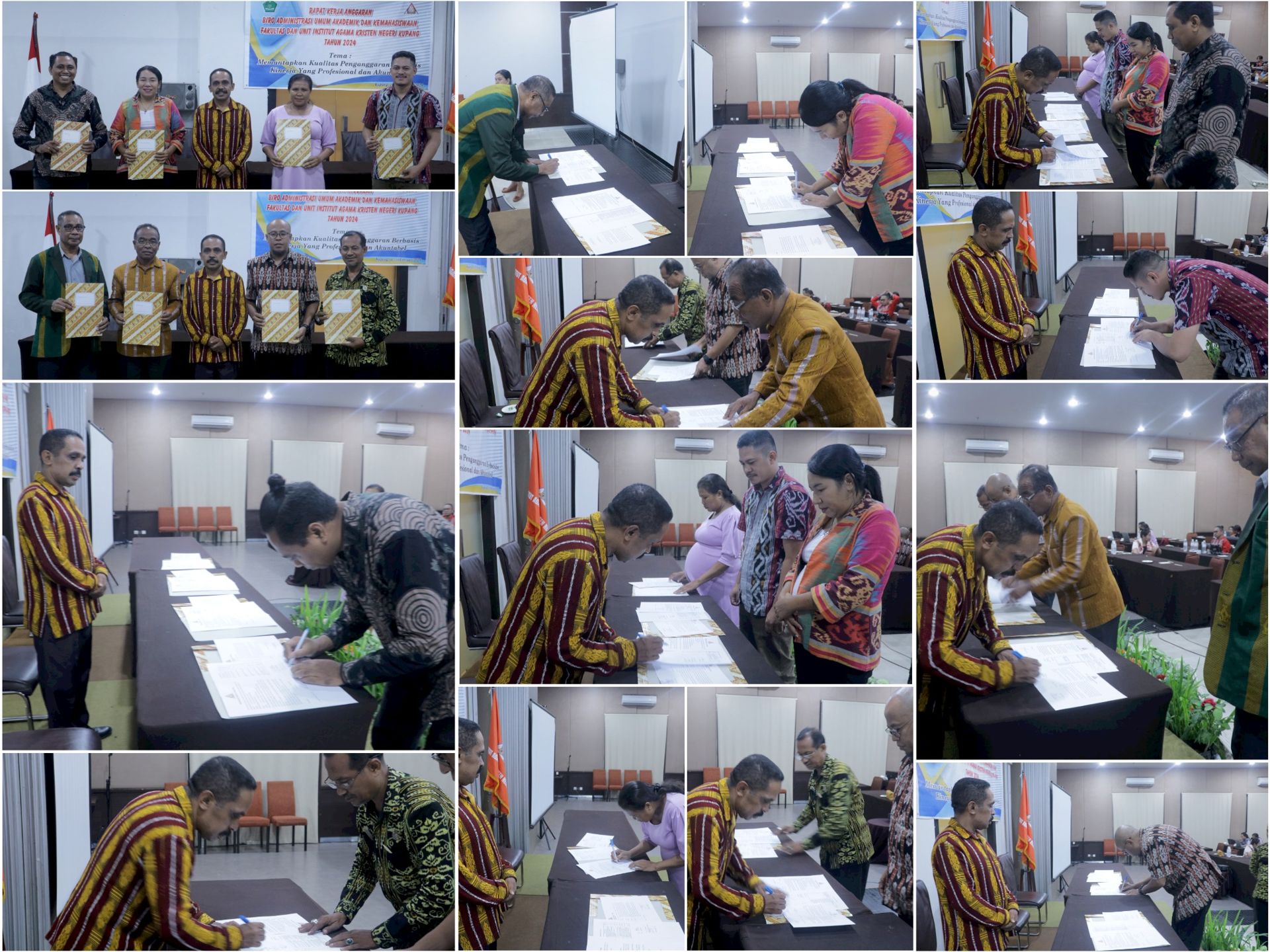 Pada penutupan kegiatan yang diselenggarakan di Hotel Sahid T-More Kupang, Jl. Piet Tallo, Kelurahan Oesapa Selatan, Kecamatan Kelapa Lima, Kupang, Provinsi NTT, dilakukan penandatanganan Pakta Integritas dan Perjanjian Kinerja. Penandatanganan tersebut melibatkan Rektor IAKN Kupang, Dr. Harun Y. Natonis, M.Si, bersama dengan Para Wakil Rektor, Para Dekan, dan Para Kepala Unit.