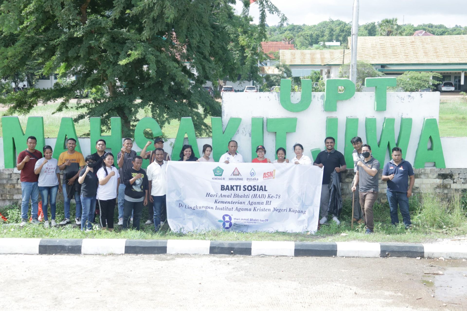 IAKN Kupang (Kemenag) – – – Institut Agama Kristen Negeri (IAKN) Kupang meriahkan perayaan Hari Amal Bhakti Kementerian Agama Republik Indonesia yang ke-78 dengan menggelar berbagai kegiatan bermanfaat bagi masyarakat. Pada Rabu (17/01/2024), seluruh civitas akademika IAKN Kupang berpartisipasi aktif dalam kegiatan Kerja Bhakti dan Walking Trash yang melibatkan sejumlah lokasi strategis di sekitar kampus.