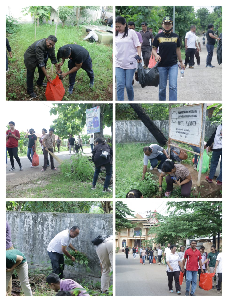 IAKN Kupang (Kemenag) – – – Institut Agama Kristen Negeri (IAKN) Kupang meriahkan perayaan Hari Amal Bhakti Kementerian Agama Republik Indonesia yang ke-78 dengan menggelar berbagai kegiatan bermanfaat bagi masyarakat. Pada Rabu (17/01/2024), seluruh civitas akademika IAKN Kupang berpartisipasi aktif dalam kegiatan Kerja Bhakti dan Walking Trash yang melibatkan sejumlah lokasi strategis di sekitar kampus.