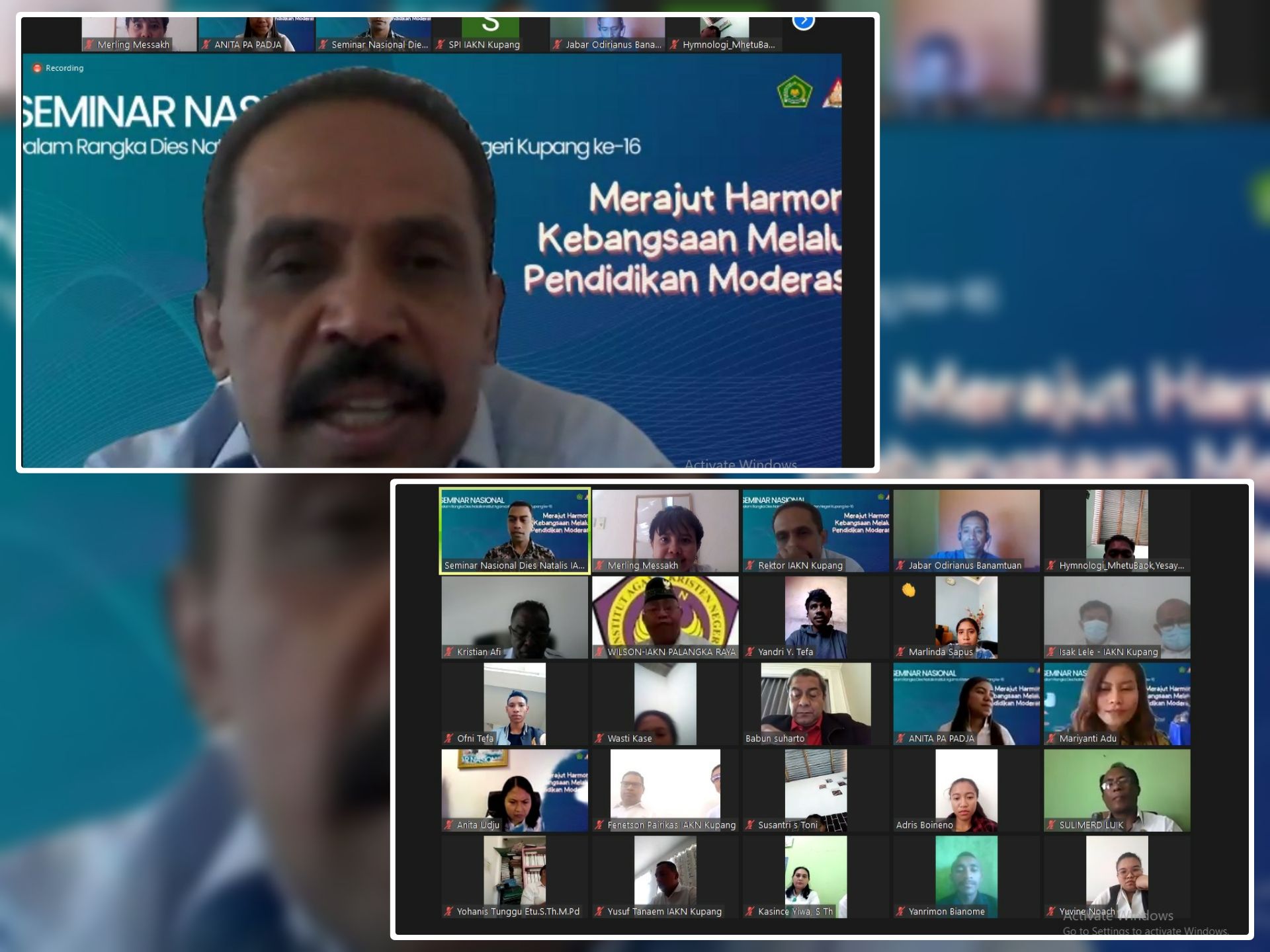 IAKN Kupang (Kemenag) – – – – Rektor Institut Agama Kristen Negeri (IAKN) Kupang, Dr. Harun Yermia Natonis, M.Si, memberikan sambutan dan membuka acara Seminar Nasional dalam rangka Dies Natalis IAKN Kupang yang ke XVI. Acara berlangsung secara daring melalui platform Zoom pada hari Selasa (29/09/2023). Dalam pidato pembukaannya, Dr. Harun Yermia Natonis menggarisbawahi pentingnya nilai-nilai toleransi yang hidup di Nusa Tenggara Timur.