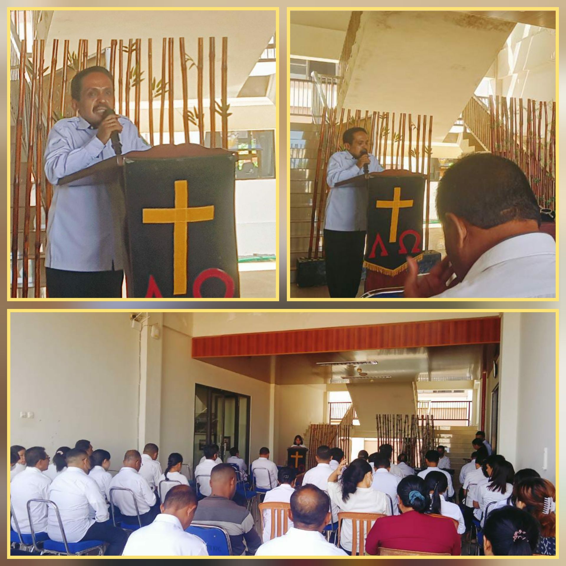 Setelah ibadah, Rektor IAKN Kupang (Dr. Harun Y. Natonis, M.Si), menyampaikan beberapa arahan kepada seluruh civitas akademika, diantaranya: