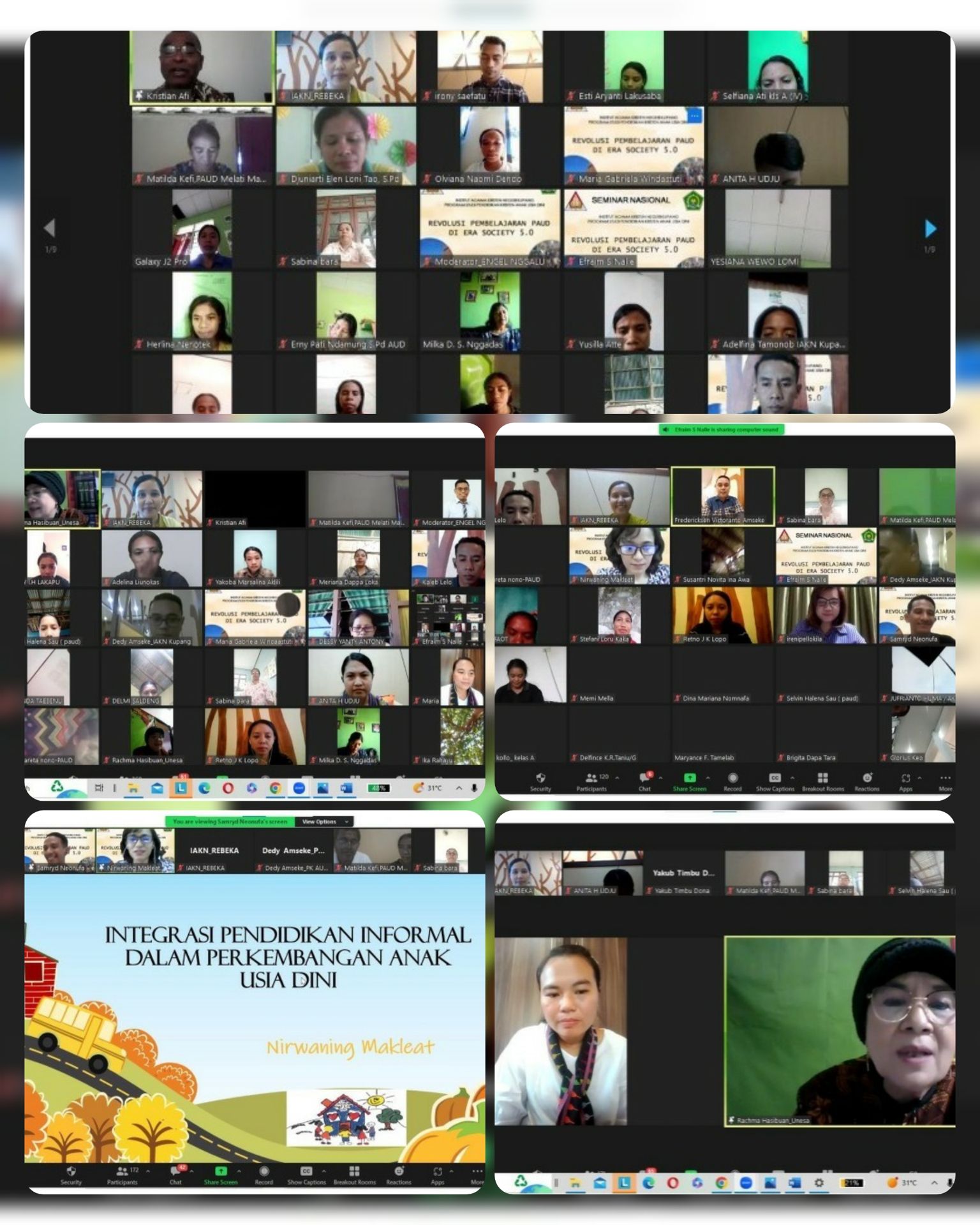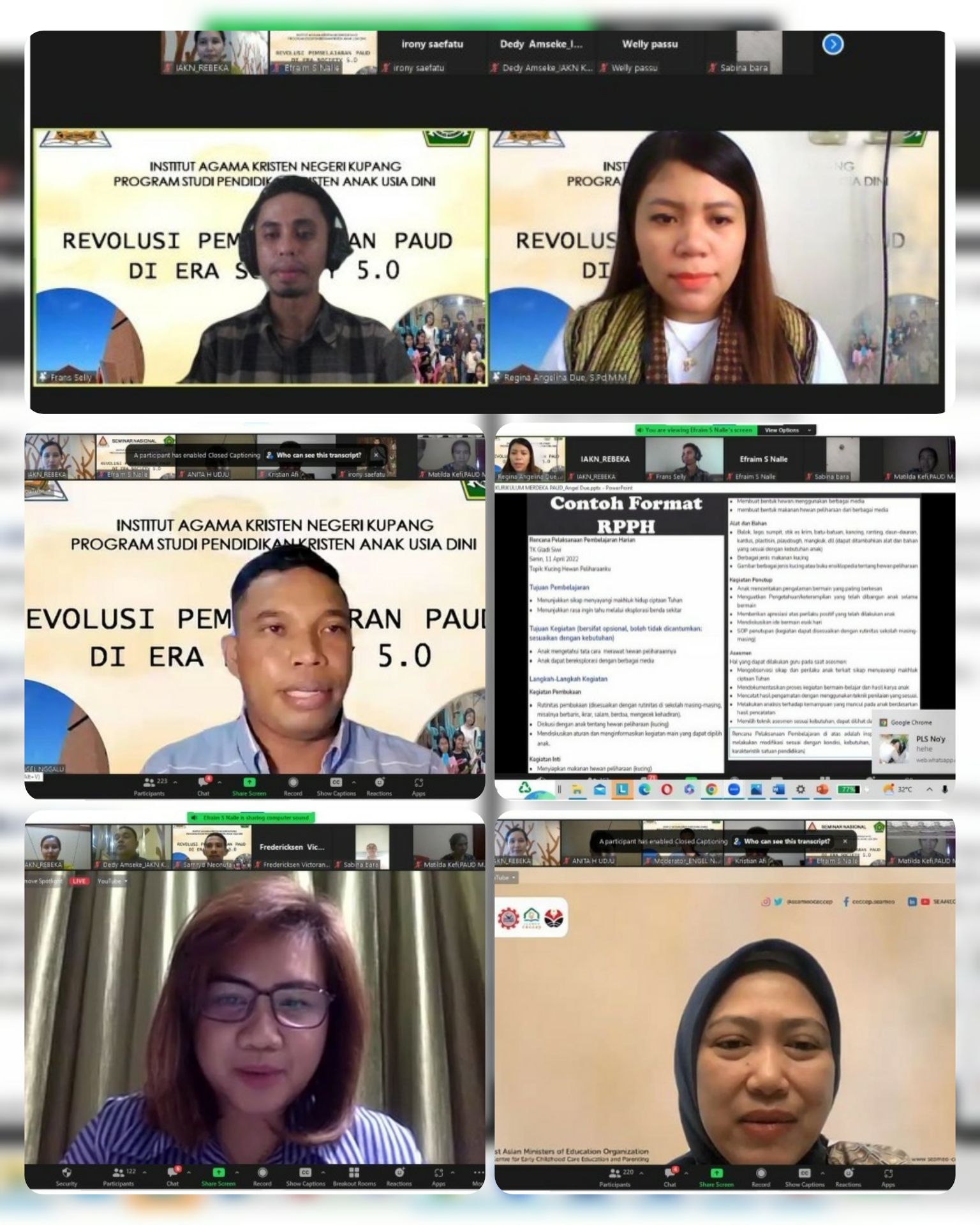 Untuk mencapai tujuan diatas, Program Studi Pendidikan Kristen Anak Usia Dini, Jurusan Ilmu Pendidikan Kristen, Fakultas Keguruan dan Ilmu Pendidikan Kristen, Institut Agama Kristen Negeri Kupang mengadakan seminar nasional secara online melalui zoom dengan Tema “REVOLUSI PEMBELAJARAN PAUD DI ERA SOCIETY 5.0.” Panitia dari kegiatan ini adalah Glorius D. Keo, M.Si sebagai Penanggung jawab, Rebeka F. Hawali, M.Pd. sebagai ketua pelaksana, Petrus Logo Radja M.Pd sebagai sekretaris, Efraim S. Nalle, M.Pd dan Fredericksen V. Amseke, M.Si sebagai anggota.