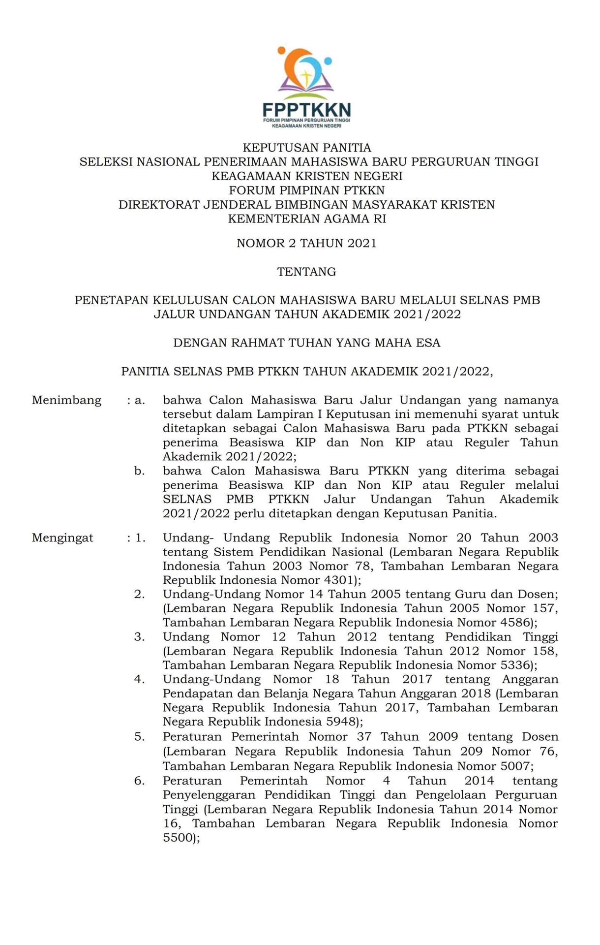 SK PENETAPAN KELULUSAN SELNAS PMB PTKKN JALUR UNDANGAN PADA IAKN KUPANG TAHUN 2021 31 Maret 2021 05:30 WITA | IAKN Kupang | Berita Kampus Previous Next Klik pada link di bawah untuk memperoleh LAMPIRAN SK PENETAPAN KELULUSAN SELNAS PMB PTKKN JALUR UNDANGAN IAKN KUPANG TAHUN 2021 LAMPIRAN SK Silakan Ikuti IAKN Kupang di Social Media Post navigation Sebelumnya: Pengumuman Acara Pembukaan Pembekalan PPL Tahun 2021Selanjutnya: SK PENETAPAN KELULUSAN SELNAS PMB PTKKN JALUR PORTOFOLIO 2021 IAKN KUPANG Berita Kampus Lainnya Dekan FISKK IAKN Kupang Ajak Civitas Akademika Jaga Produktivitas dan Sinergi dalam Pelayanan 12/11/2024 IAKN Kupang Gelar Upacara Hari Pahlawan, Ajak Civitas Akademika Teladani Semangat Kepahlawanan 12/11/2024 IAKN Kupang Perkuat Kolaborasi Pendidikan Internasional dengan Taiwan 12/11/2024 IAKN Kupang Apresiasi Mahasiswa Berprestasi, Endi Missa Peraih Emas PEPARNAS XVII 11/11/2024 Pengumuman Perpanjangan Pendaftaran Wisuda Tahap II Tahun 2024 04/11/2024 Rektor IAKN Kupang Tekankan 5 Pilar Mentalitas: Membangun SDM Unggul Bersama Pemkab Kupang 31/10/2024 Audiensi IAKN Kupang dan Pemkab Kupang: Sinergi Membangun SDM Unggul dan Kampus Berintegritas 31/10/2024 IAKN Kupang Jalin Kerja Sama dengan Gwacheon Cultural Center, Korea Selatan 30/10/2024 IAKN Kupang Gelar Seminar Nasional Psikologi: Membangun Resiliensi Mental di Era Society 5.0 30/10/2024 Seminar ‘Fatherless: The Way to Find Yourself’ Dorong Pencarian Jati Diri di Tengah Kehilangan Figur Ayah 30/10/2024 Kategori Acara & Tulisan IlmiahBerita KampusSEKILAS IAKN KUPANG Berita Terbaru IAKN Kupang Gelar Ibadah Awal Pekan: Ajak Civitas Akademika Renungkan Orientasi Kerja dalam Iman 12/11/2024 Acara & Tulisan Ilmiah Baca selengkapnya Dekan FISKK IAKN Kupang Ajak Civitas Akademika Jaga Produktivitas dan Sinergi dalam Pelayanan 12/11/2024 Berita Kampus Baca selengkapnya IAKN Kupang Gelar Upacara Hari Pahlawan, Ajak Civitas Akademika Teladani Semangat Kepahlawanan 12/11/2024 Berita Kampus Baca selengkapnya IAKN Kupang Perkuat Kolaborasi Pendidikan Internasional dengan Taiwan 12/11/2024 Berita Kampus Baca selengkapnya