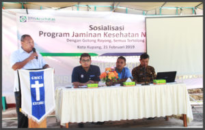Kamis, 21 Februari 2019, Badan penyelenggara jaminan sosial (BPJS) kota kupang bekerjasama dengan organisasi GMKI untuk melakukan sosialisasi program jaminan kesehatan nasional “dengan gotong royong semua tertolong”, kegiatan sosialisasi ini dilaksanakan di kampus STAKN Kupang (Oebobo).